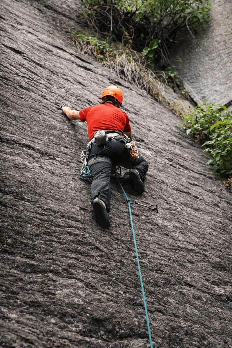 • Anchor awareness and basic stance management during multi-pitch climbs