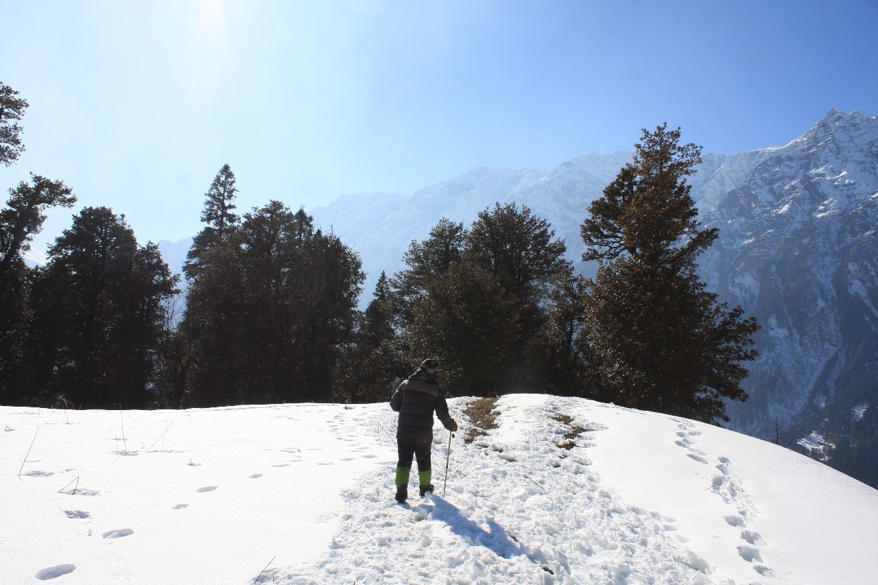 A short, scenic 30-minute drive takes you to Solang Valley (2,650 m) the starting point of your winter hike.