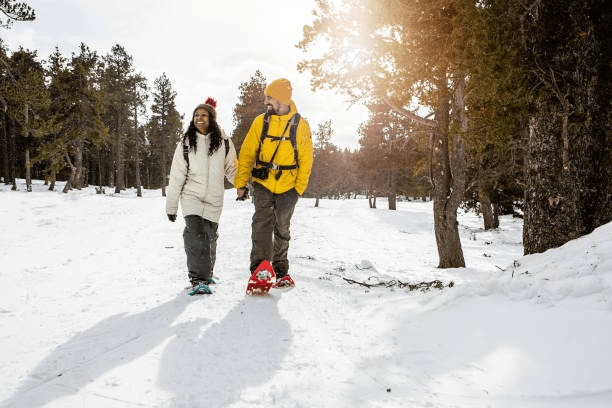 No prior experience is needed. Our certified guides teach all basic snowshoeing and safety techniques on the trail.