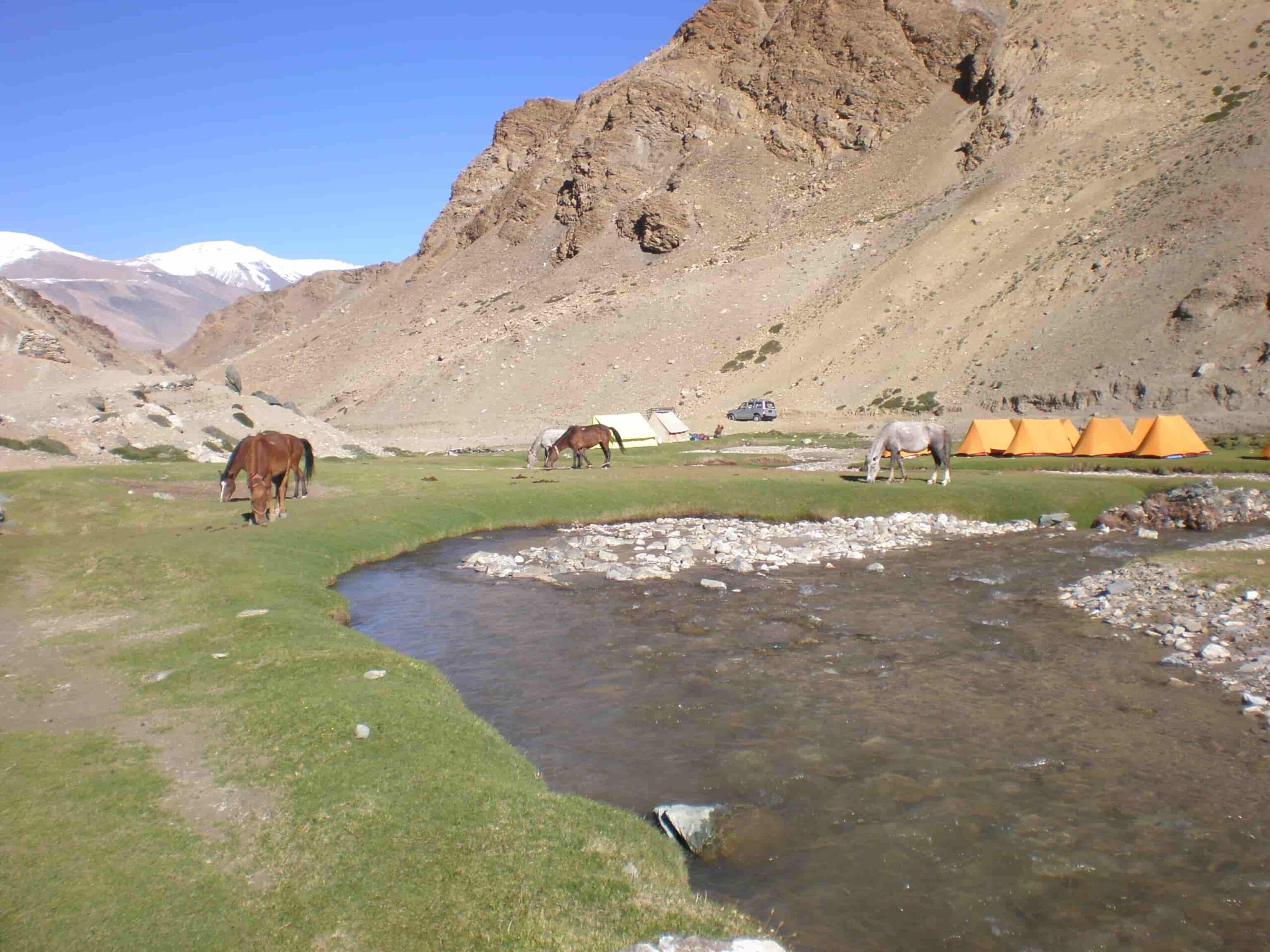 We begin with a long descent along a stream by a narrow valley accompanied by stunning peaks on both sides, until we reach the campsite. During the summer season, shepherds can be seen with their flocks.